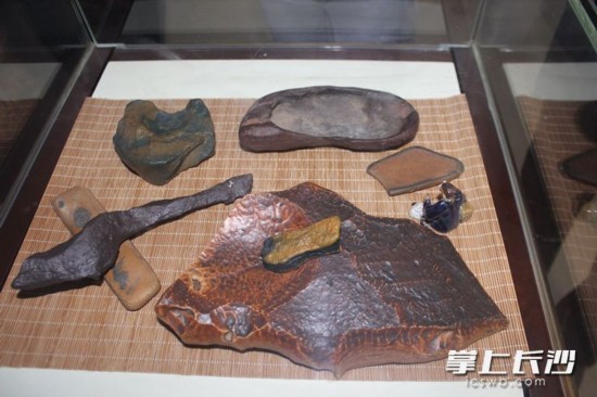 “石头里藏着的秘密需要耐心地观察才能发现。”许多貌似平凡的石头经过彭再军的组合、陈列焕发出独特风采。其中一组以断砚、残墨、秃笔、镇纸组成的文房四宝的价值难以估量:“单独的毛笔、砚台形状的自然奇石已经难得,能组合齐全更是难能可贵。”