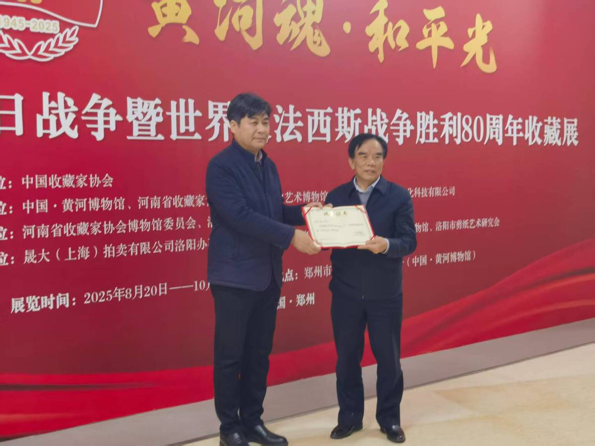 2025年11月10日,由中国收藏家协会指导,黄河博物馆与河南省收藏家协会联合主办的《“黄河魂·和平光”——中国人民抗日战争暨世界反法西斯战争胜利80周年收藏展》在黄河博物馆顺利落下帷幕。