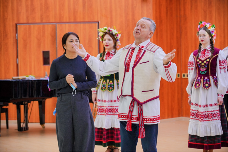 随后,一场由莫斯科国立柴可夫斯基音乐学院合唱团与河南艺术职业学院师生、外籍教师们联袂献上的文艺汇演,将现场气氛推向高潮。