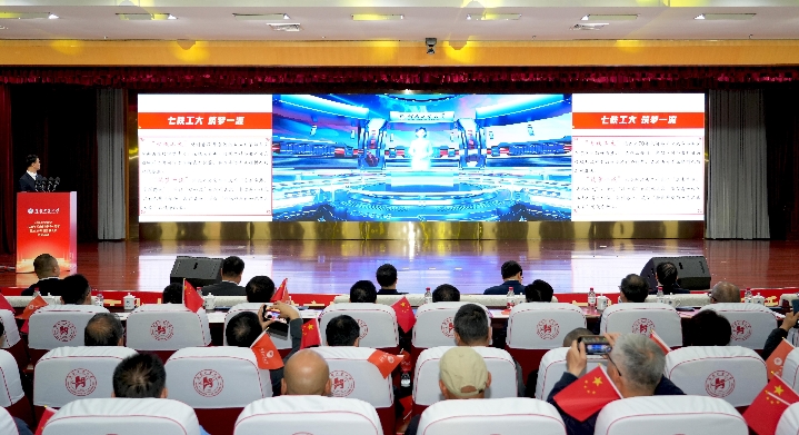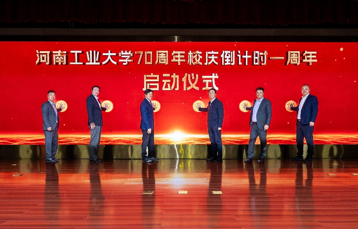会上,校长吴智深现场宣读校庆一号公告。公告宣示河南工业大学将以70周年校庆为契机,回眸一路芳华,展望美好愿景,凝聚奋进共识,广结深情厚谊,开启“特色鲜明的一流工业大学”建设新篇章。在师生校友的见证下,现场发布了70周年校庆主题和标识。70周年校庆标识融合祥龙、齿轮和麦穗元素,形象展现了学校七十年的奋斗历程和办学特色。“七秩工大 筑梦一流”的校庆主题,镌刻着七十年来学校与国家同频共振的峥嵘岁月,承载着学校“追求卓越、实现跨越”,争创“双一流”的时代追求,彰显着一代代工大人薪火相传、接续奋斗,建设“特色鲜明的一流工业大学”的使命担当。