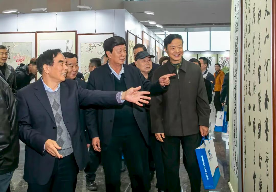 河南省军区原副司令、少将王太顺,河南省总工会副主席、党组成员王占波,河南农商银行党委副书记韩东亮,中原银行党委常委、派驻纪检监察组组长张建军,中原银行党委常委、副行长姚辉元,河南省文联原副主席、省书法家协会原副主席张剑锋,河南省文联副主席、省书法家协会主席吴行,河南省美术家协会驻会副主席秘书长陈文利,中国职工书法家协会副主席席念平,河南省供销社原党组成员,监事会主任孟少辉,河南省委直属机关工委宣传部部长李季坤,中原证券股份有限公司党委副书记朱军红,中原信托党委副书记、工会主席卫志刚,中原资产管理有限公司党委副书记、工会主席艾长城,中原银行业务总监聂国庆,中原银行董事会秘书潘文尧,中原银行工会副主席兼机关工会主席黄庆华,中原银行工会副主席兼机关工会副主席王鑫,河南省直文联副主席、省直美协主席罗运华,河南省直文联副主席、省直摄协主席关照耀,河南省直文联副主席、省直书协副主席郑延保,河南省直文联监事、省直摄协副主席邢中国,河南省直文联副主席、省文艺评论家协会副主席张良,河南省直文联副主席、省诗歌学会副会长秘书长张爱萍,河南省直文联副主席、省直朗诵艺术协会主席秦莉,河南省直文联秘书长张占标,河南省直文联执行秘书长、省直志愿者联合会秘书长马祺盛,河南省直文联副秘书长、省直摄协副主席兼秘书长吴腾翼等和省直单位书画摄影艺术家及爱好者参加了本次展览开幕式。